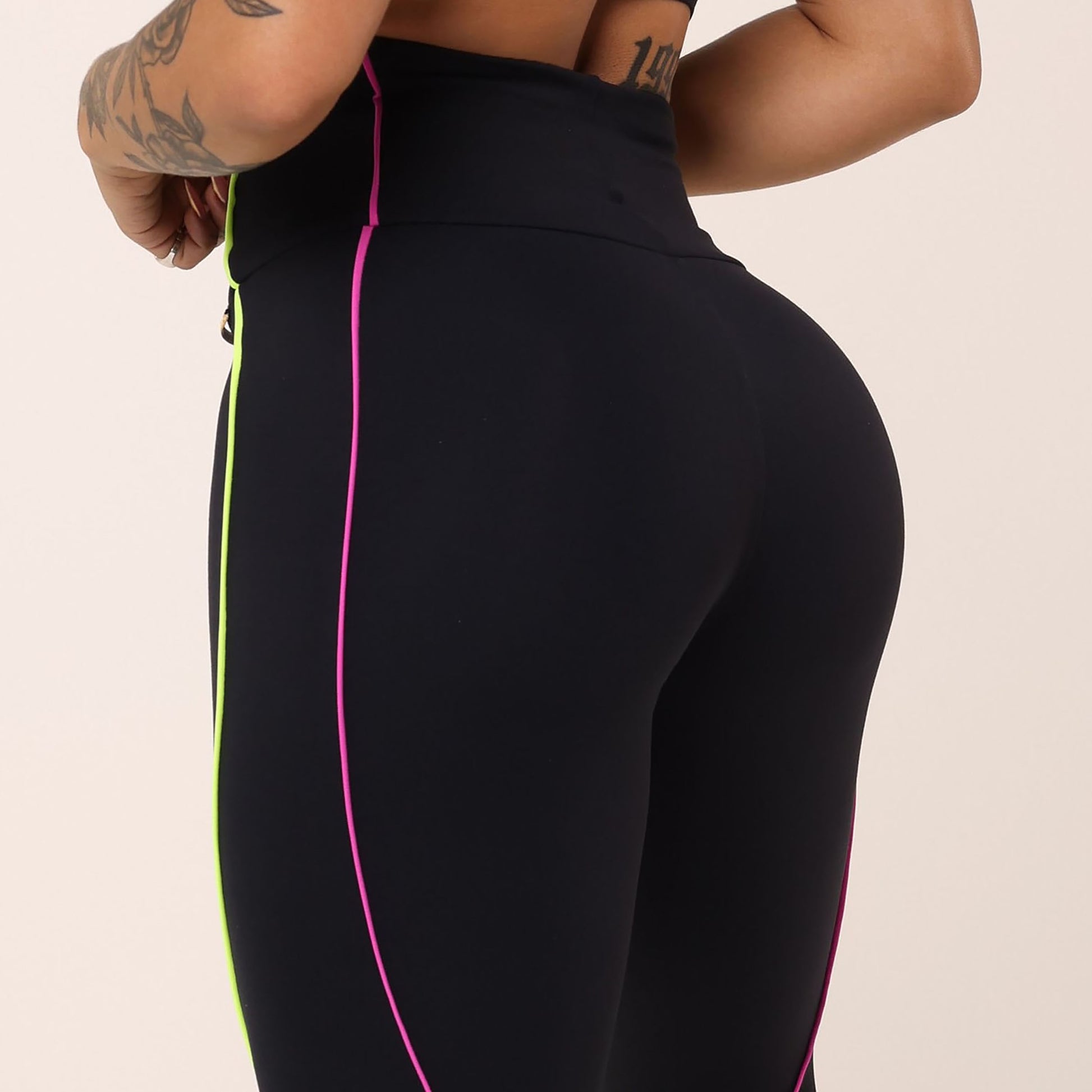 Legging de Compresión Negro & Líneas Neones Brasileño (5 Estrellas) & Crop Top Violeta