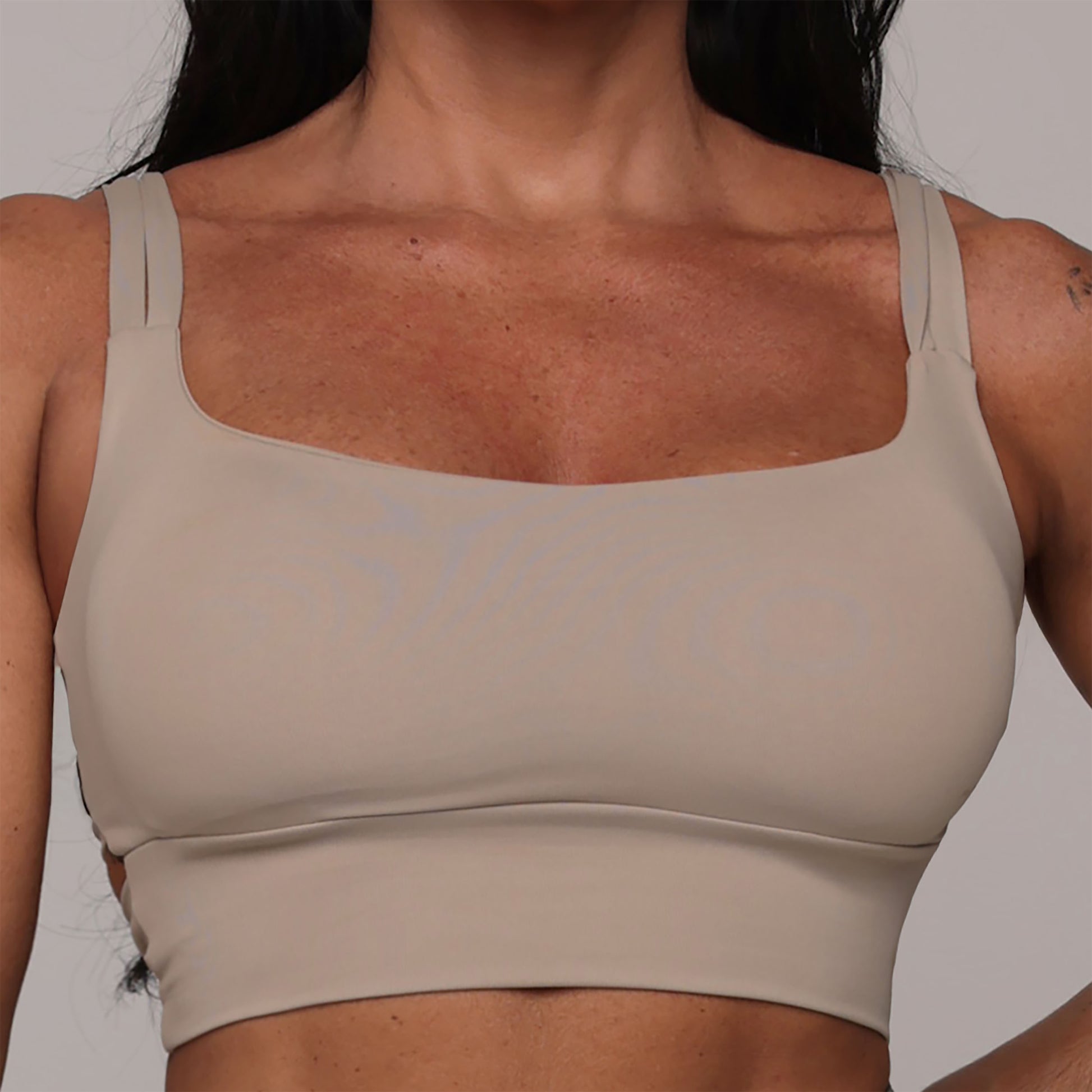 Top tiene copas en el área del busto, son removibles, además se amarra en la espalda